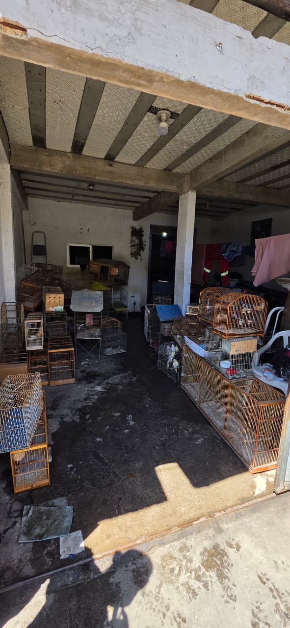 Durante a ação, as equipes identificaram um cenário de extrema insalubridade, com aves mantidas em condições inadequadas, presença de filhotes mortos em decomposição e infestação por insetos e roedores ao redor das gaiolas, evidenciando graves violações à legislação ambiental e de proteção animal.