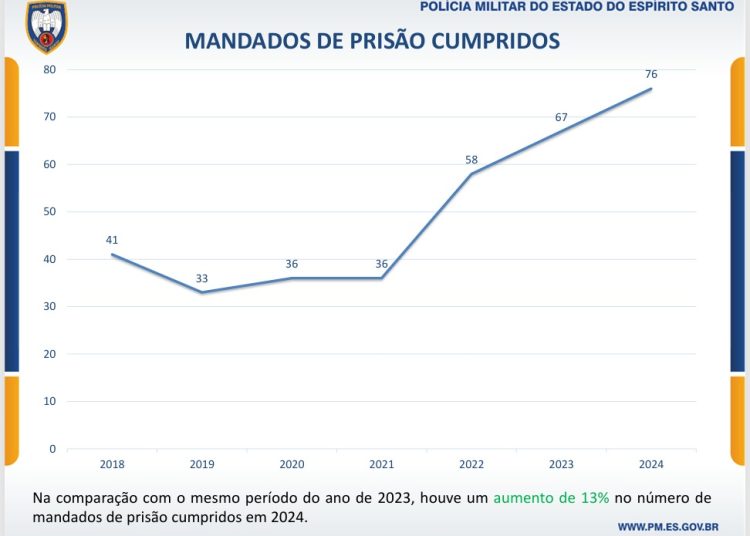 Mandados de Prisão Cumpridos: O cumprimento de 76 mandados de prisão reflete um aumento de 13% em relação a 2023, também um recorde na série.