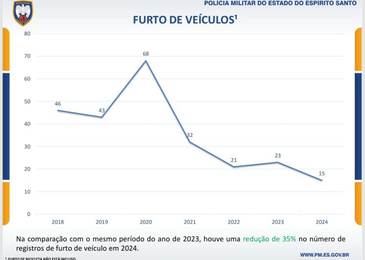 É importante destacar que o número de veículos furtados mais os roubados (29) é menor que o número total de veículos recuperados (32) pela polícia.