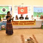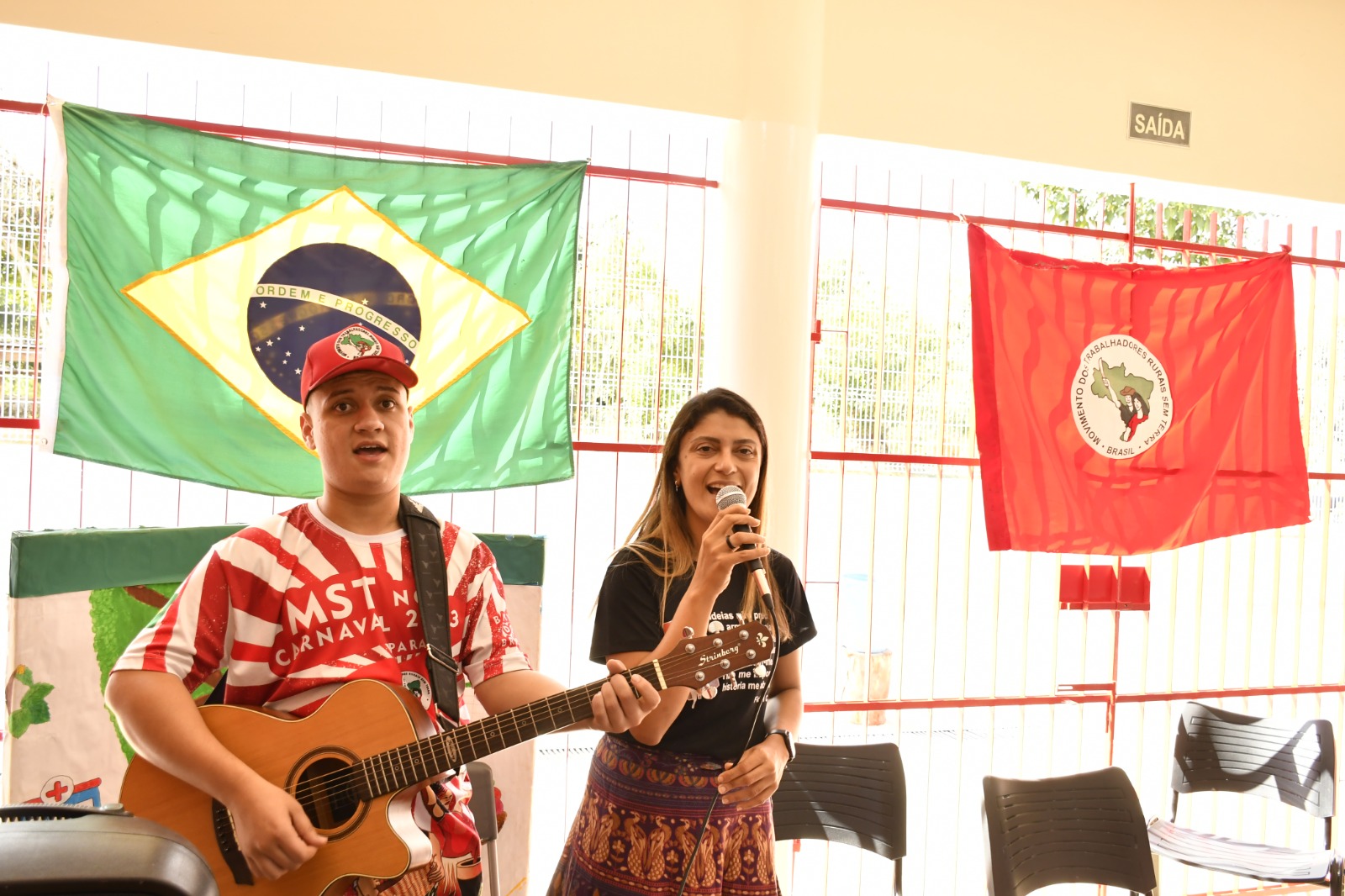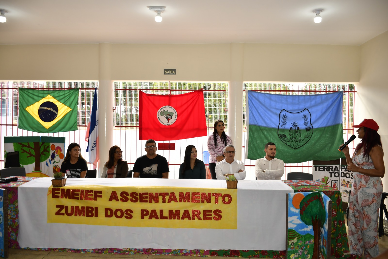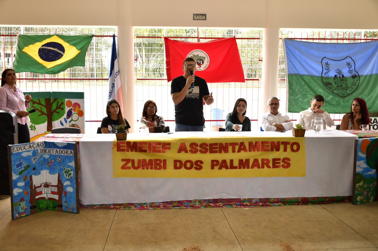 A diretora da EMEIEF Zumbi dos Palmares, Mariana Mota, falou da relação simbiótica Escola-Reforma Agrária: “Temos uma concepção enquanto Movimento, que sem Escola, sem Educação, a Reforma Agrária não está completa. E Assentamento, Acampamento do MST, tem que ter Escola. E que não seja uma escola qualquer, mas que traga no seu jeito de ensinar e de aprender, a coragem e o desejo de continuar na terra, trabalhando, produzindo alimentos saudáveis. O desejo de construir novas relações. Que não nos coloque em situação de desigualdade, de preconceito. O desejo de construir uma sociedade diferente.”