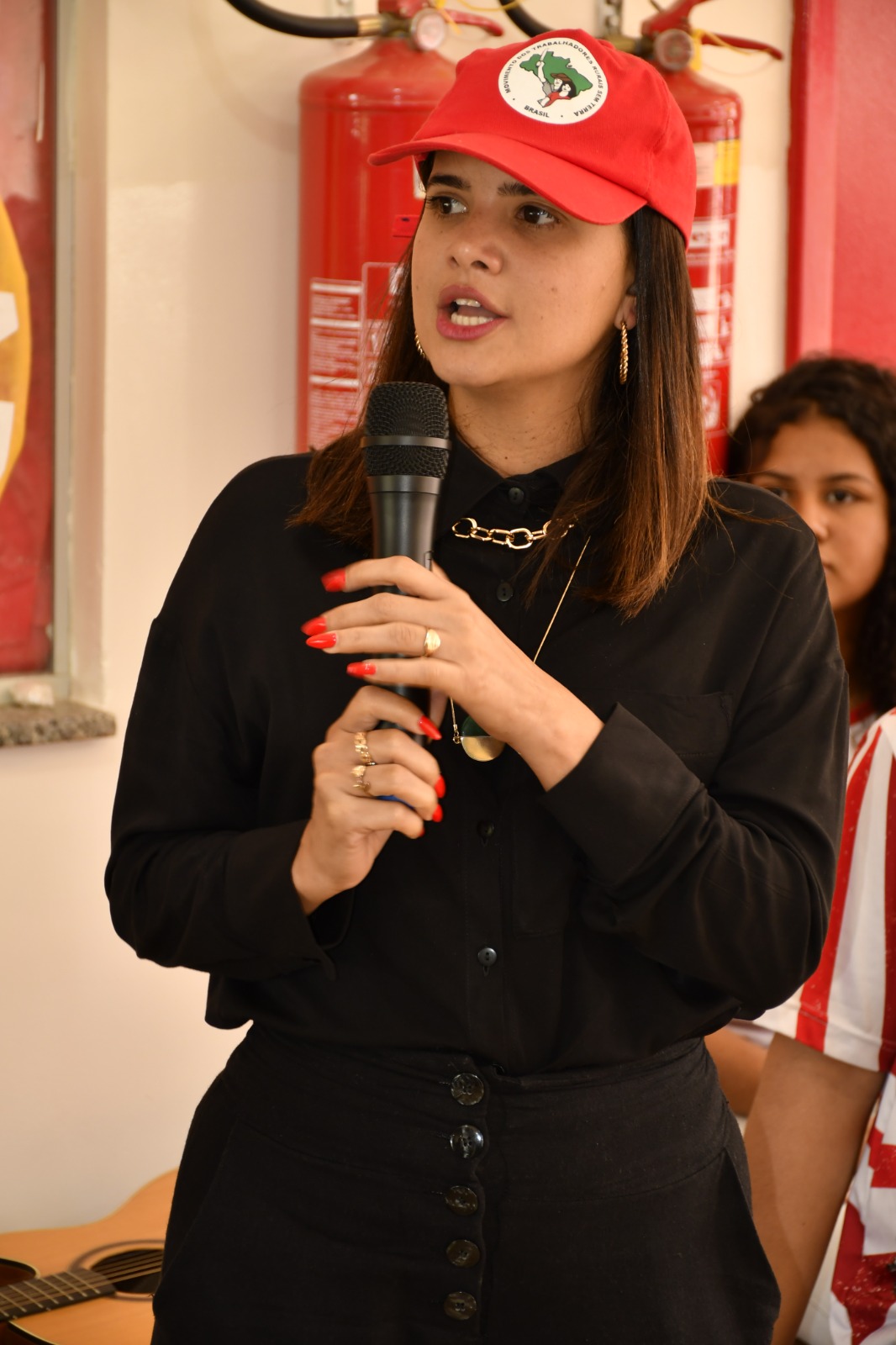 Como símbolo de agradecimento pelo envolvimento com a causa, ela presentou a engenheira da Prefeitura, Grazieli Ferreira, com um boné do MST.