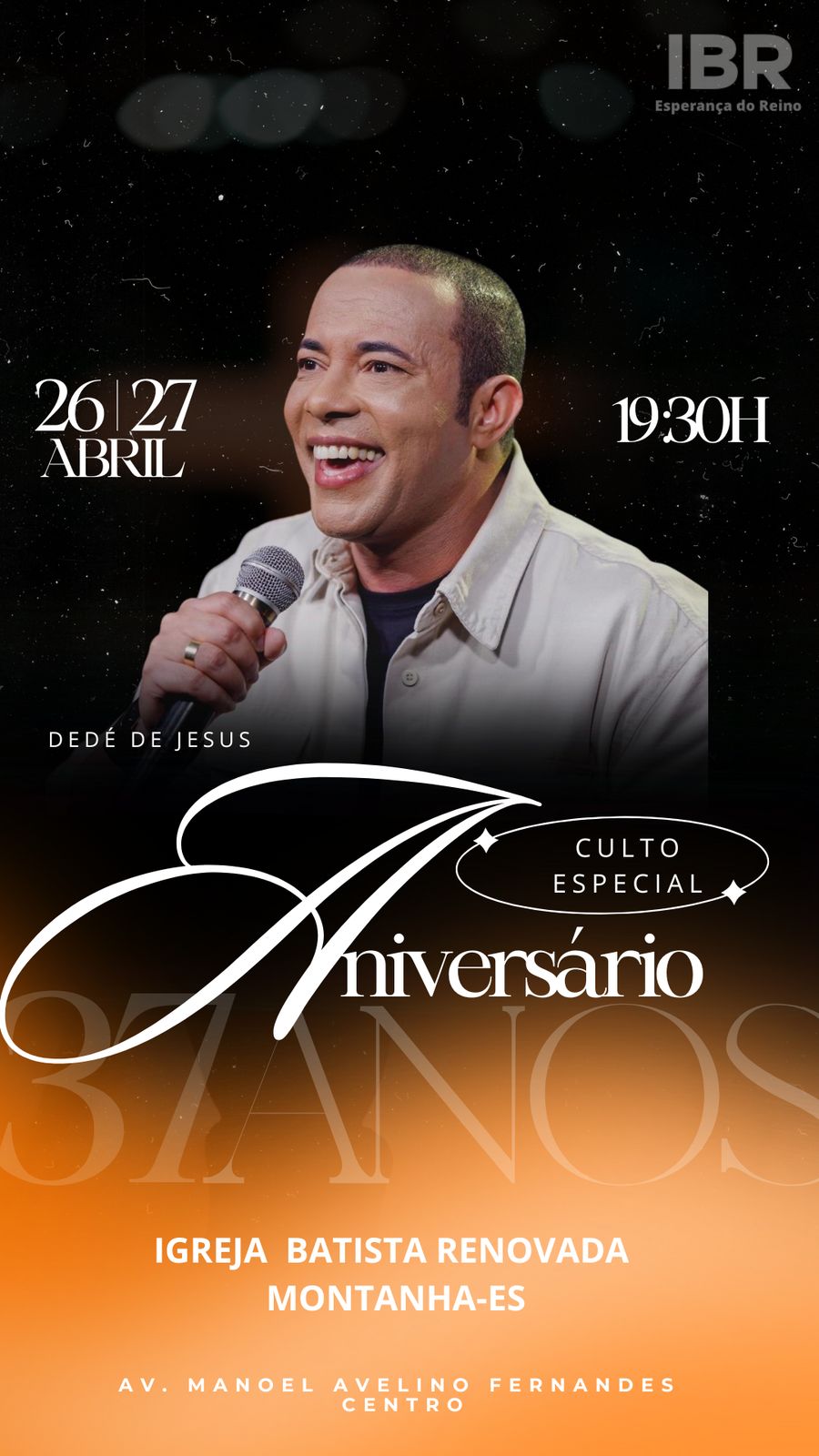 A Igreja Batista Renovada de Montanha está completando 37 anos de bênçãos, milagres e crescimento espiritual, e você é o nosso convidado especial!