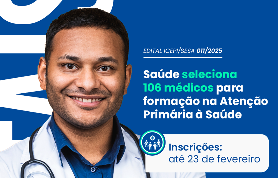 A Secretaria da Saúde (Sesa), por meio do Instituto Capixaba de Ensino, Pesquisa e Inovação em Saúde (ICEPi), lançou, na última quinta-feira (13), o edital com 106 vagas para médicos em formação na Atenção Primária à Saúde (APS) e cadastro de reserva. As inscrições vão até o dia 23 de fevereiro, pelo site https://icepi.es.gov.br/editais/abertos.
