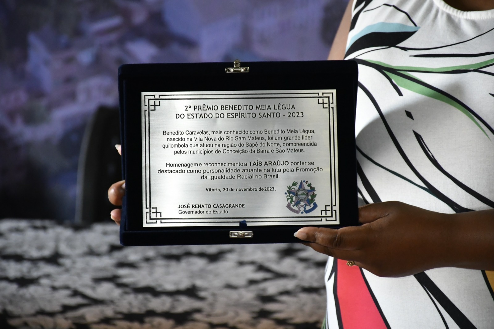 Criado pela SEDH, o prêmio, que está na segunda edição, homenageia personalidades negras que são ou que foram destaque na luta pela igualdade racial e na luta quilombola. São Mateus foi uma das últimas localidades do País no comércio de pessoas para trabalho escravo, como lembrou, em discurso, o governador Renato Casagrande: