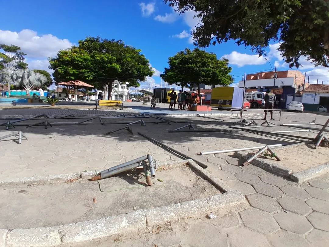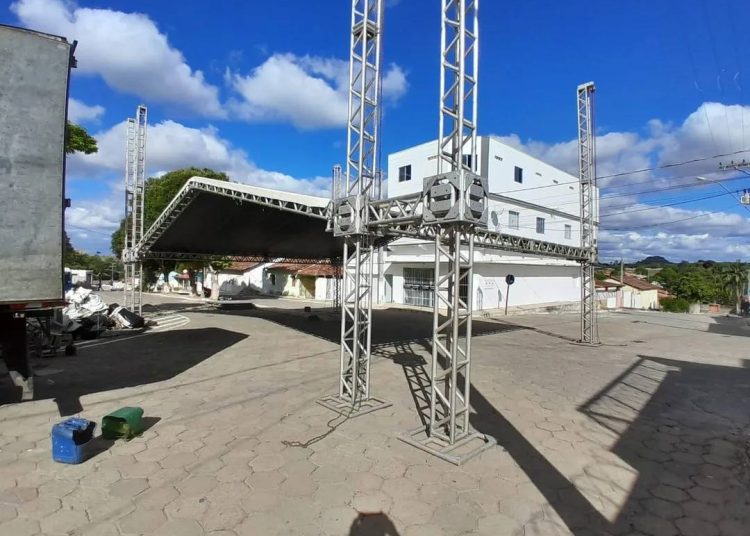 – A montagem da estrutura do Arraiá da Pedra Furada, em São João do Sobrado, está a todo vapor. Palco, tendas, sonorização, luzes, portal de entrada da festa, bandeirolas, dentre outros itens, estão sendo organizados e instalados nas imediações da Praça Mauro de Aguiar.