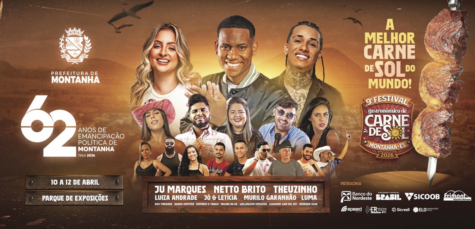 De 10 a 12 de abril de 2026, o Parque de Exposições será palco de um evento que une cultura, música, tradição e, claro, os sabores únicos da carne de sol que fazem de Montanha uma referência nacional.
