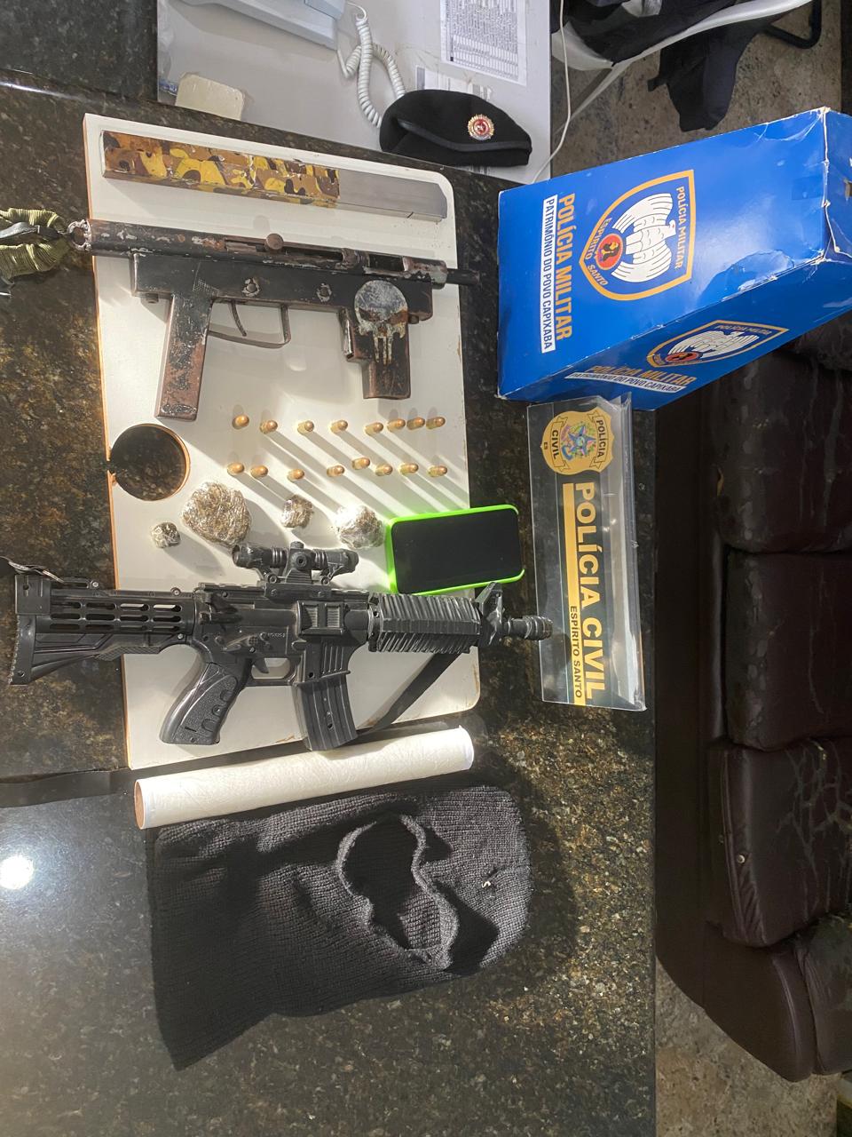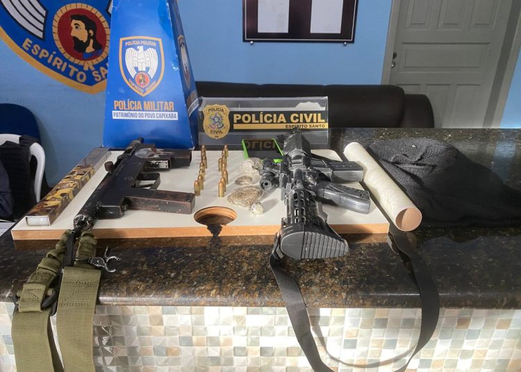 OPERAÇÃO CONJUNTA PM E PC RESULTA NA APREENSÃO DE SUBMETRALHADORA E DROGAS EM ÁGUIA BRANCA/ES