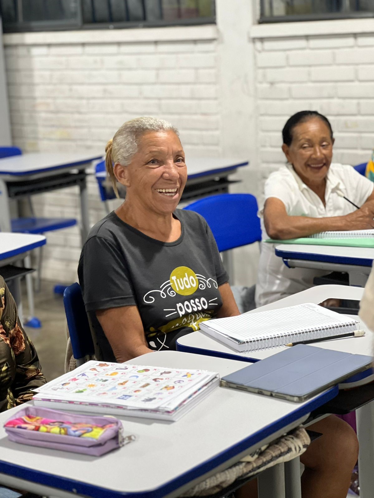 Durante a abertura oficial das atividades, foi registrada a emocionante participação da Sra. Maria Lourdes de Jesus da Silva, aluna da turma da Escola Vila Nova. Sua trajetória é exemplo de dedicação, resiliência e desejo de aprender, refletindo o impacto positivo que o PBAlfa vem promovendo.