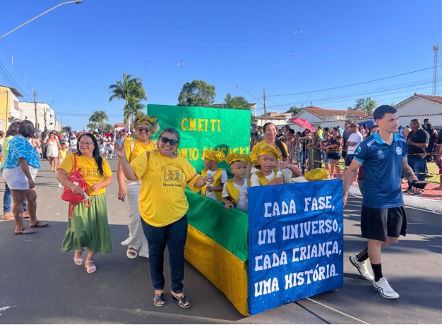 Com o tema “Nossa história, nosso orgulho: Educação, Diversidade, Equidade e Transformação”, o desfile contou com a participação das escolas do município, que apresentaram temáticas ligadas aos projetos e ações desenvolvidas no âmbito escolar, como o respeito às diferenças, a inserção da computação no currículo com as aulas de robótica e a construção de uma sociedade mais justa.