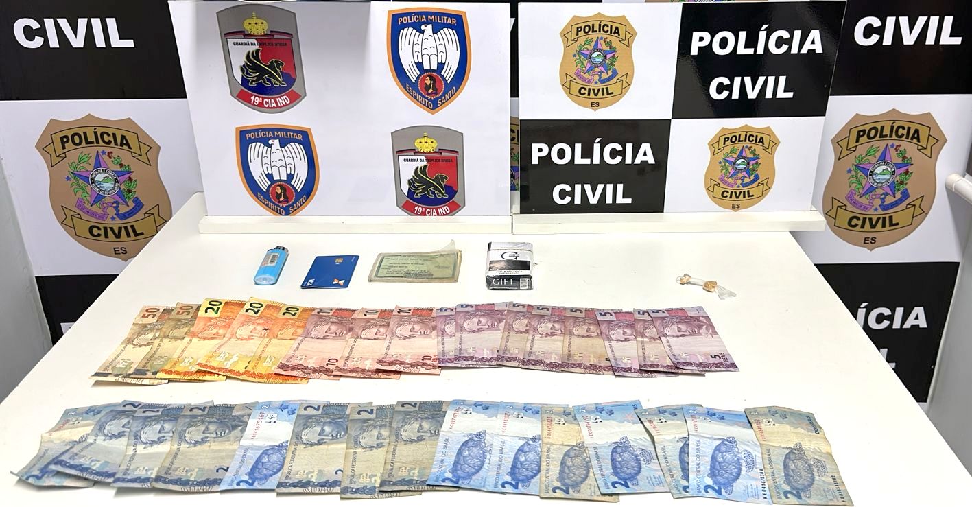 A Polícia foi acionada logo após o crime e deu início às buscas pelo suspeito. Ele foi localizado e preso no bairro Santo Antônio, em Pinheiros. Com ele, foram apreendidos R$ 260,00 em espécie, roubados do caixa do supermercado, além de duas pedras de crack.