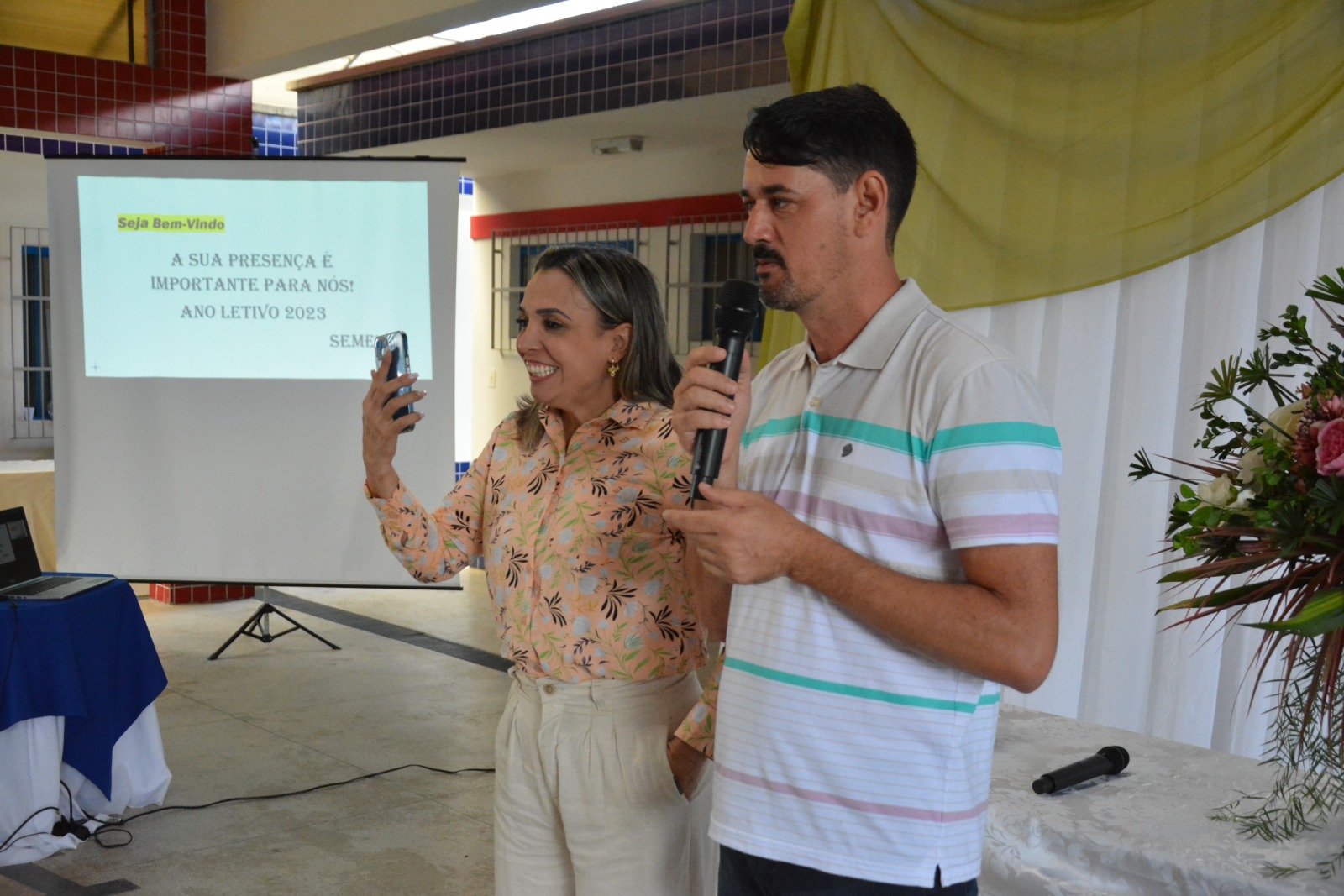 Logo após a fala das autoridades presentes, a prefeita declarou aberto o ano letivo de 2023, aos professores, chamando à frente o Padre Patrick da Silva Wanderley, formado em filosofia pelo Centro Universitário Salesiano de Vitória, em teologia pelo Instituto de Filosofia e Teologia da Arquidiocese de Vitória – IFTAV; atual diretor da Rádio Kairós FM, pároco da Paróquia Santo Antônio em São Mateus e também Presidente de Comunicação do Regional Leste 3 da CNBB. O Pe. Patrick conduziu a formação que durou em torno de 2 horas, com momentos de testemunho e reflexões que tendem agregar muito aos educadores que participaram do encontro.