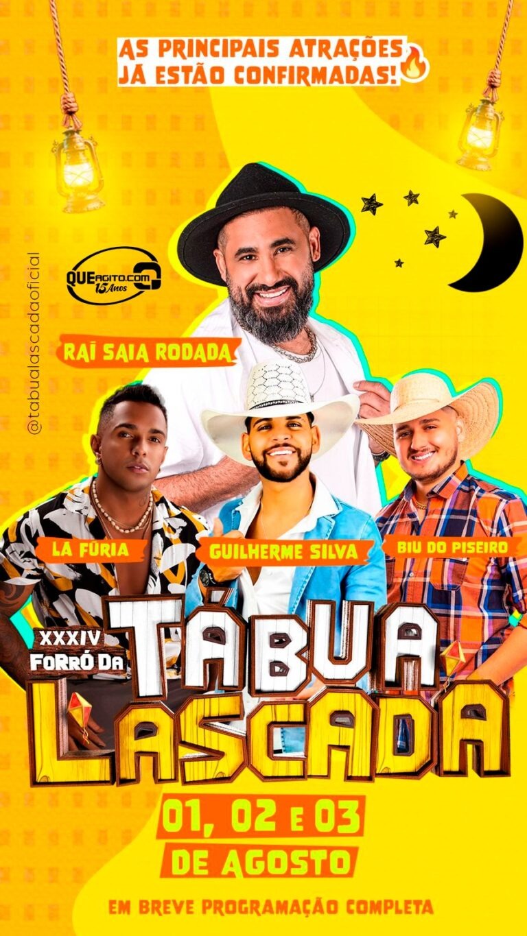 Segundo a prefeitura, o evento contará com grandes nomes do forró, piseiro e swingueira, como Raí Saia Rodada, La Fúria, Guilherme Silva e Biu do Piseiro, que irão embalar o público com seus maiores sucessos, que dominam as principais rádios e plataformas digitais do país.