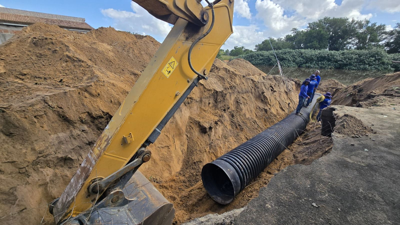 • Desde as primeiras horas do dia, equipes da Prefeitura estão atuando nos pontos mais afetados, buscando viabilizar o escoamento da água e reduzir os impactos à população. Paralelamente, seguem em andamento as obras estruturais de microdrenagem em Guriri, com a instalação de tubos e manilhas em diferentes trechos, substituindo o modelo antigo de drenagem superficial.