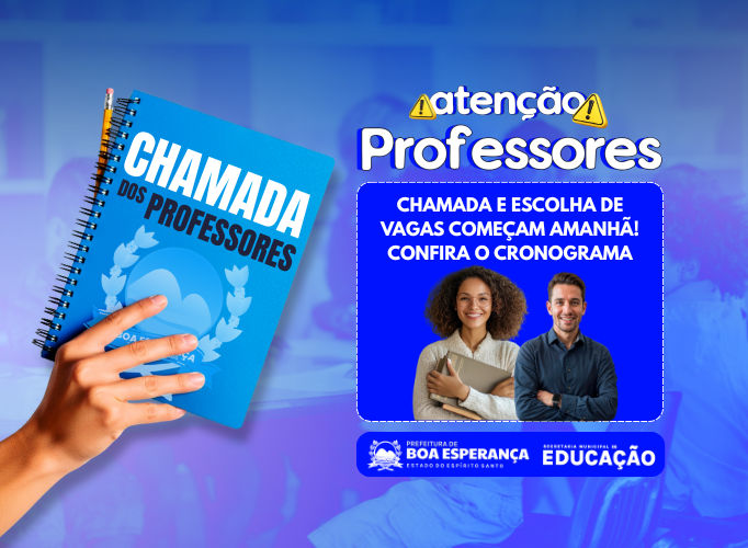 A Prefeitura de Boa Esperança, por meio da Secretaria Municipal de Educação (SEMED), publicou a convocação da 8ª etapa do Processo Seletivo Simplificado nº 092/2025, destinada à escolha de vagas e admissão temporária de profissionais da educação para o ano letivo de 2026.