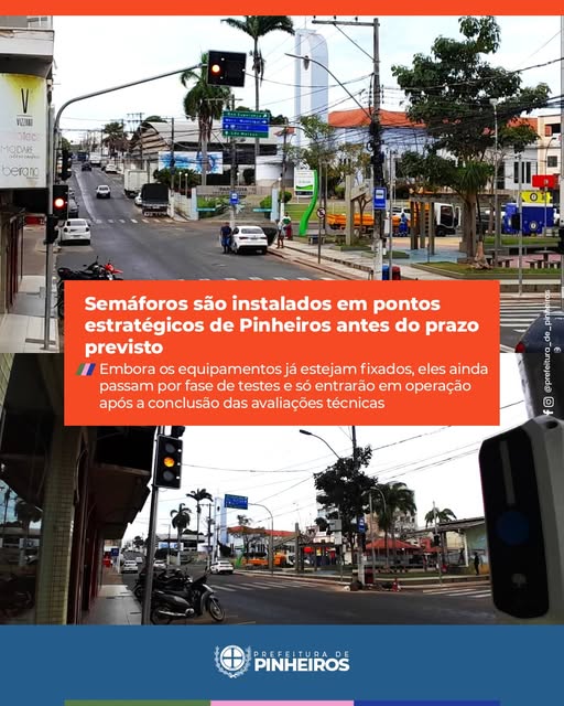 – Pinheiros deu mais um passo importante para a modernização e segurança do trânsito no município. Os primeiros semáforos já foram instalados em pontos estratégicos da cidade antes do prazo inicialmente previsto, que era fevereiro de 2026.